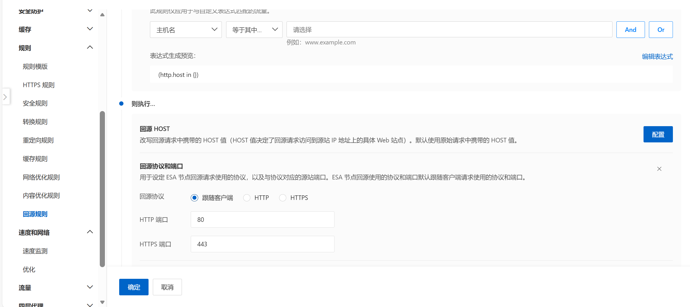 一般NAS中的资源都是非标准端口,即非80/443,到也问题不大。添加完加速后,进入规则加一条回源规则。直接指定回源协议以及回源端口。